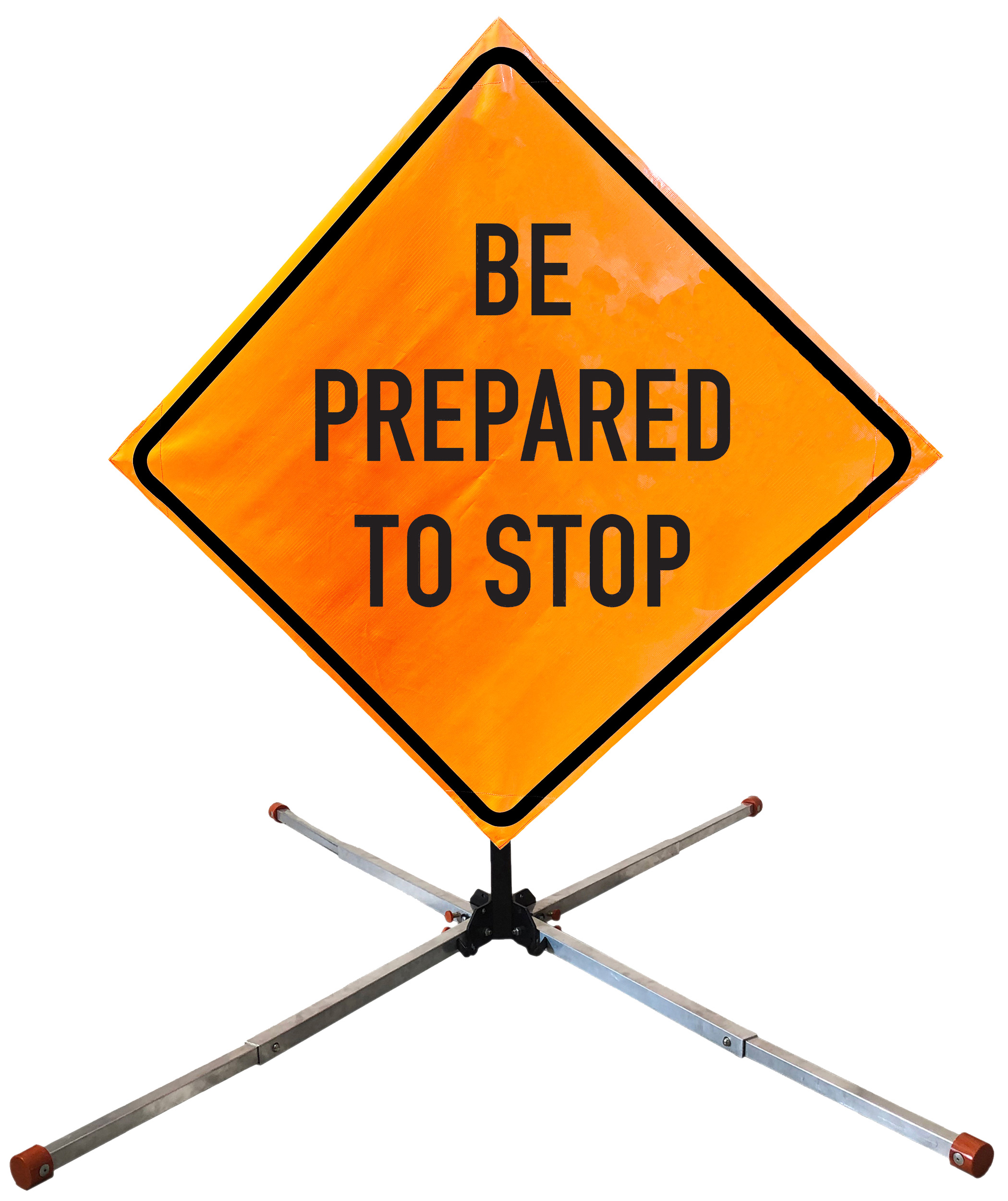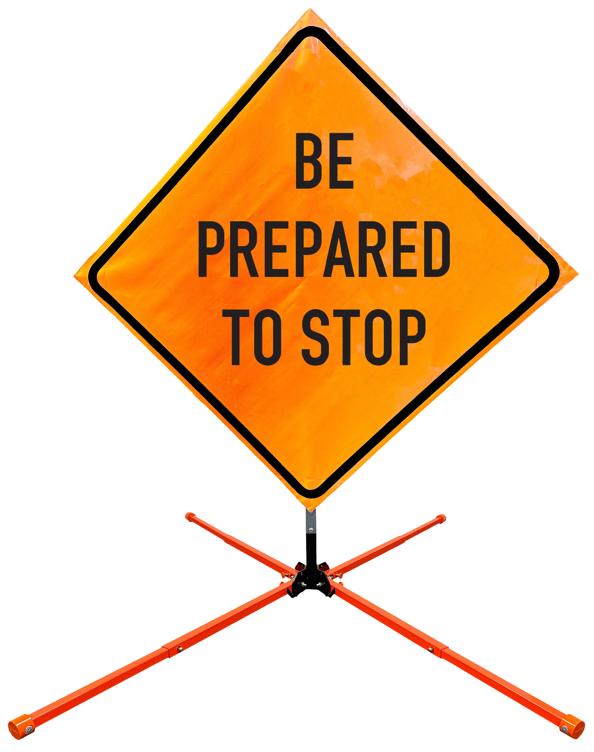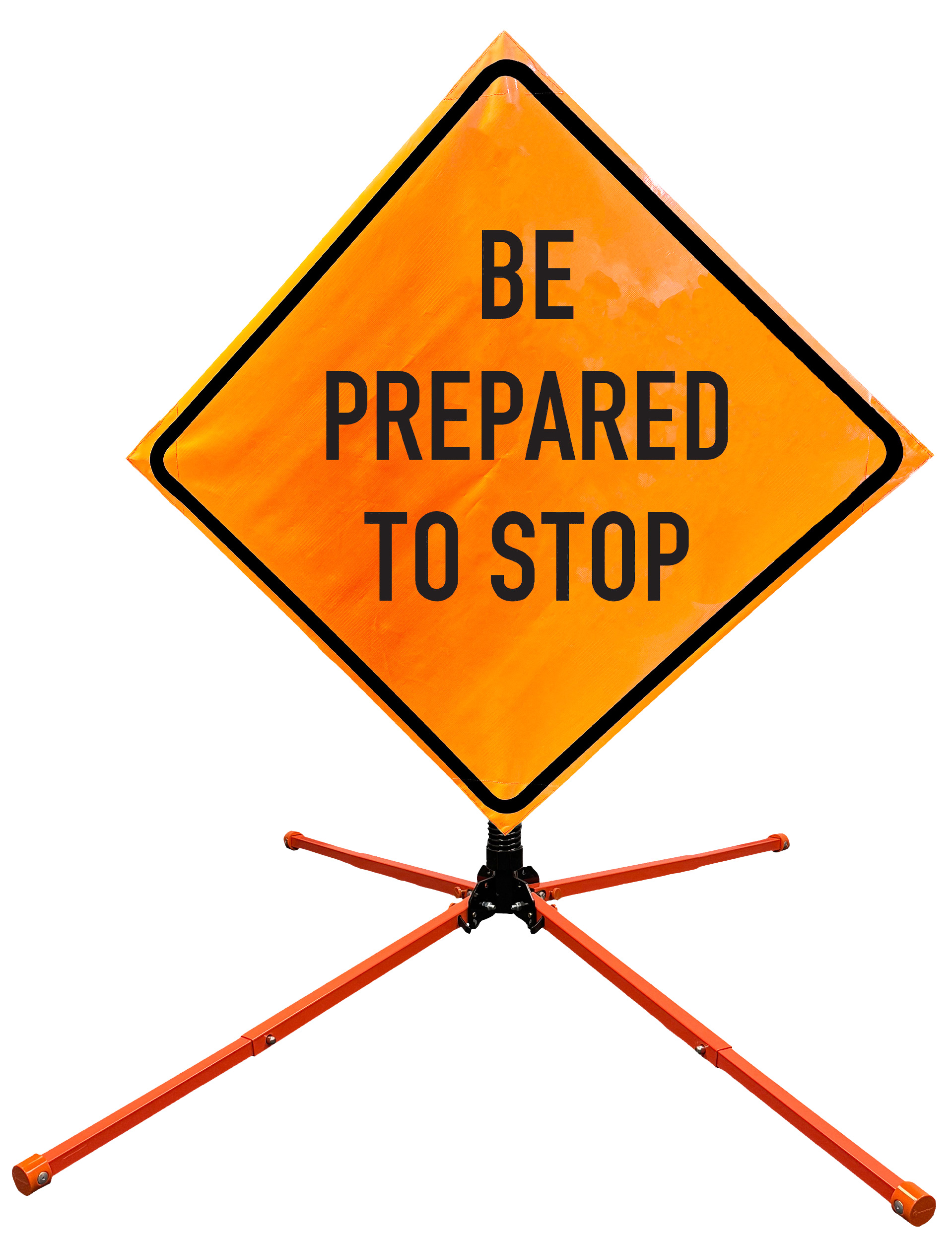 Roll Up Sign & Stand Kits - OrangeGear®: 48" x 48" Non-Reflective Vinyl Single Spring Steel BE PREPARED TO STOP
