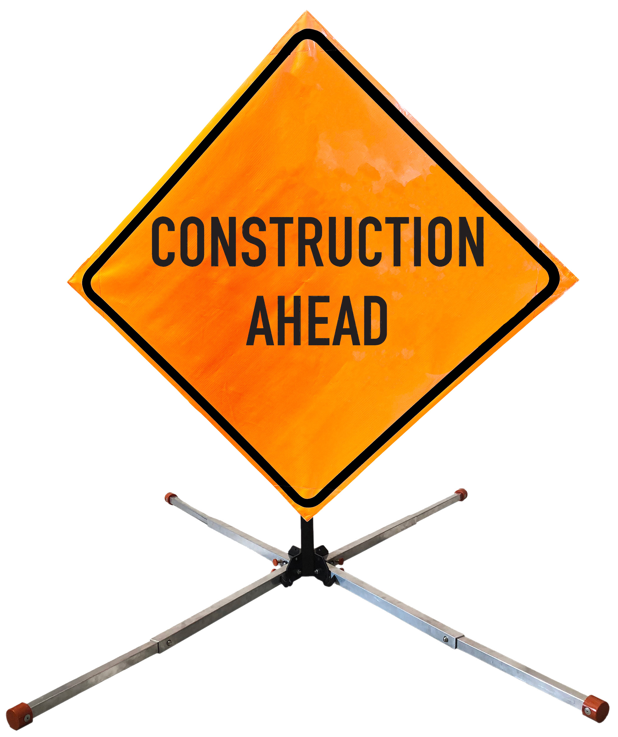 Roll Up Sign & Stand Kits - OrangeGear®: 36" x 36" Mesh Springless Aluminum CONSTRUCTION AHEAD
