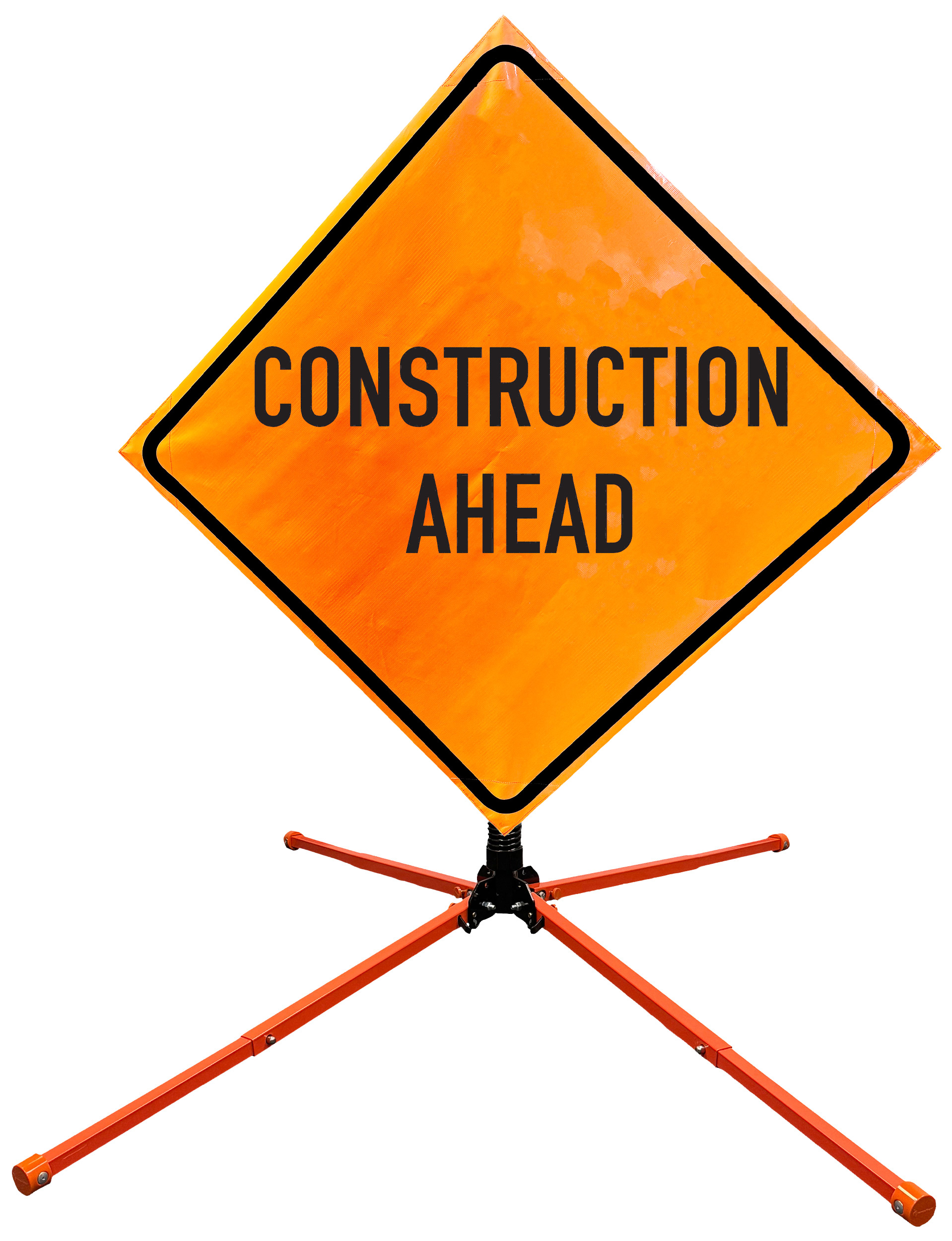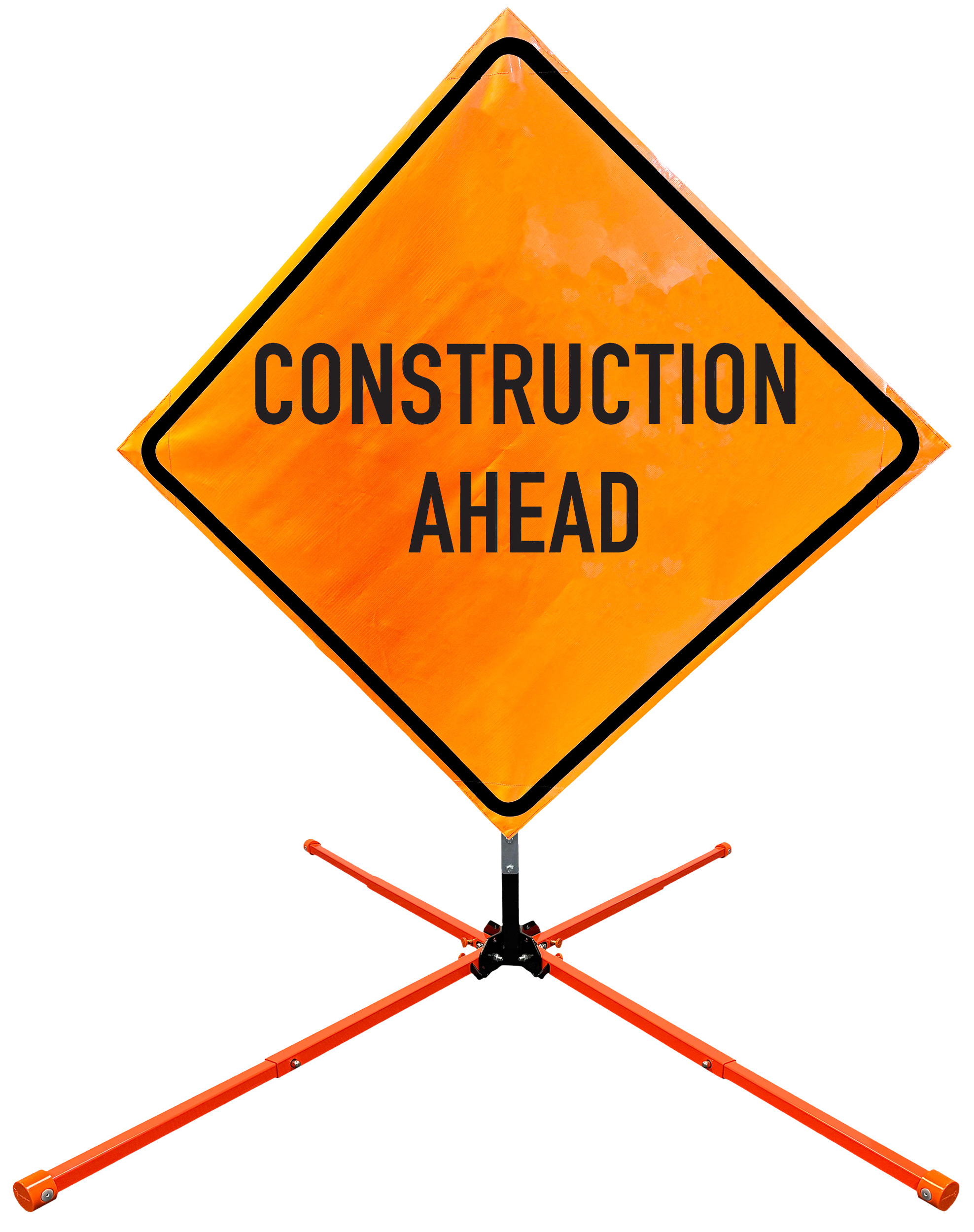 Roll Up Sign & Stand Kits - OrangeGear®: 36" x 36" Mesh Springless Steel CONSTRUCTION AHEAD