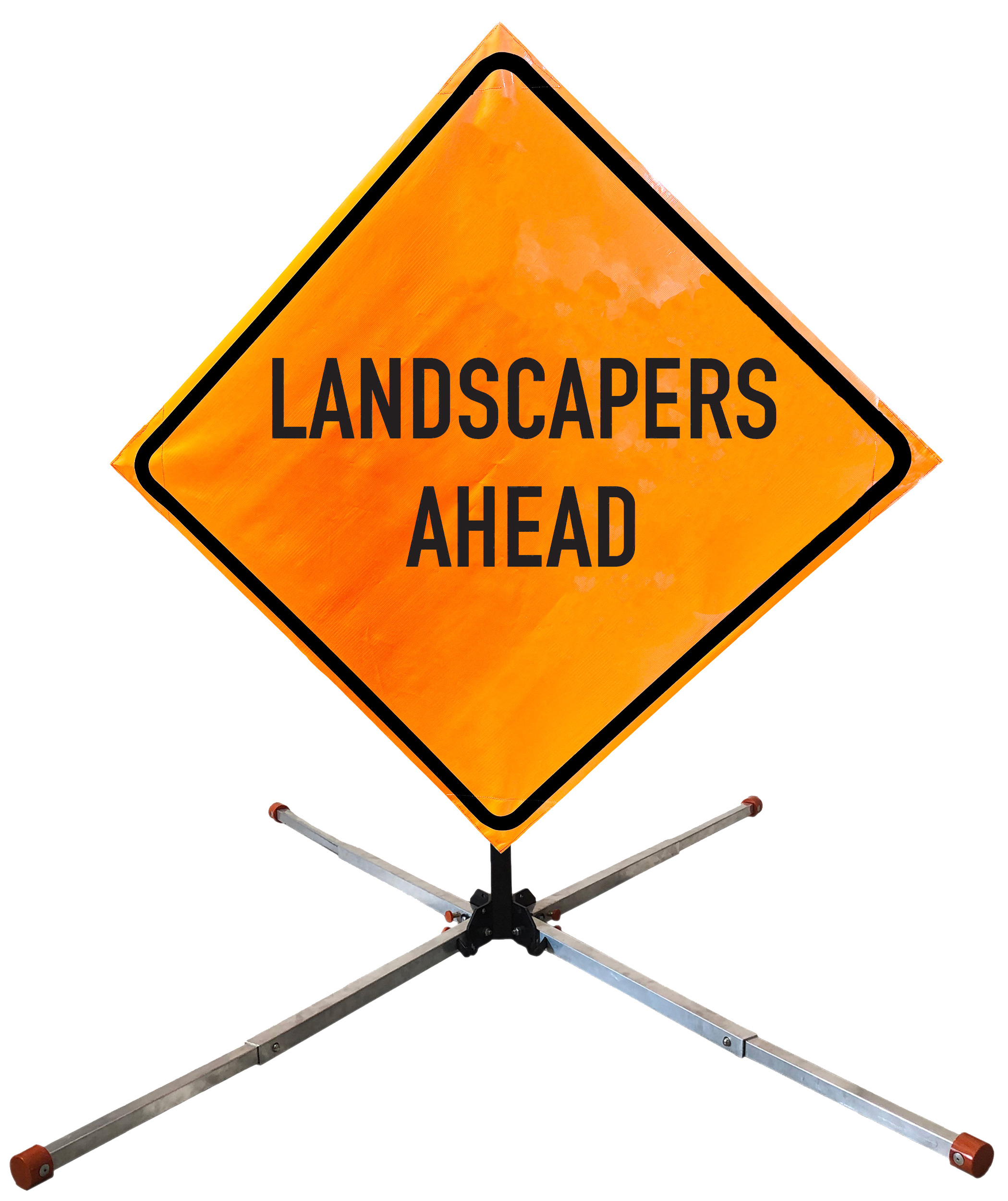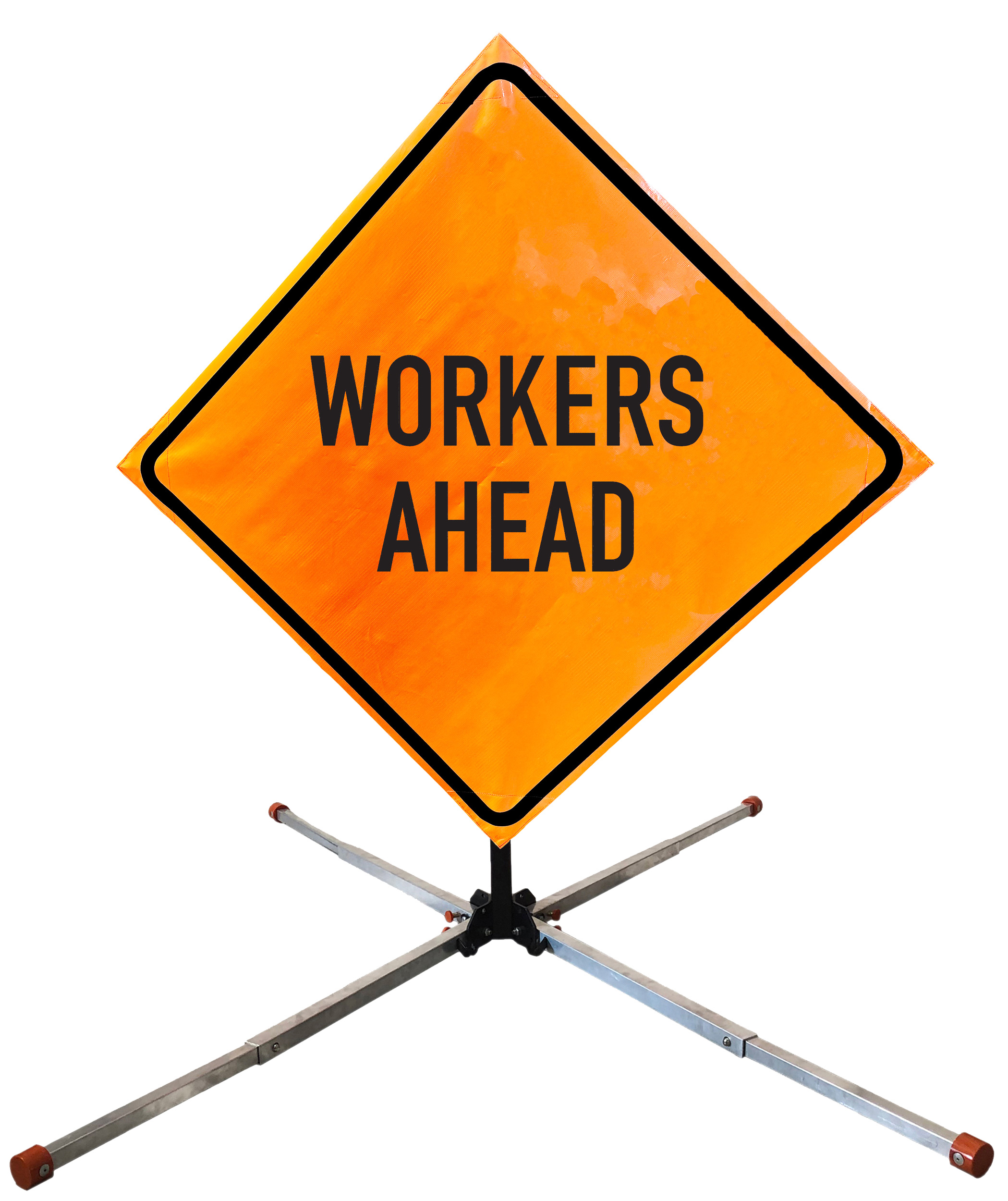 Roll Up Sign & Stand Kits - OrangeGear®: 48" x 48" Non-Reflective Vinyl Springless Aluminum WORKERS AHEAD