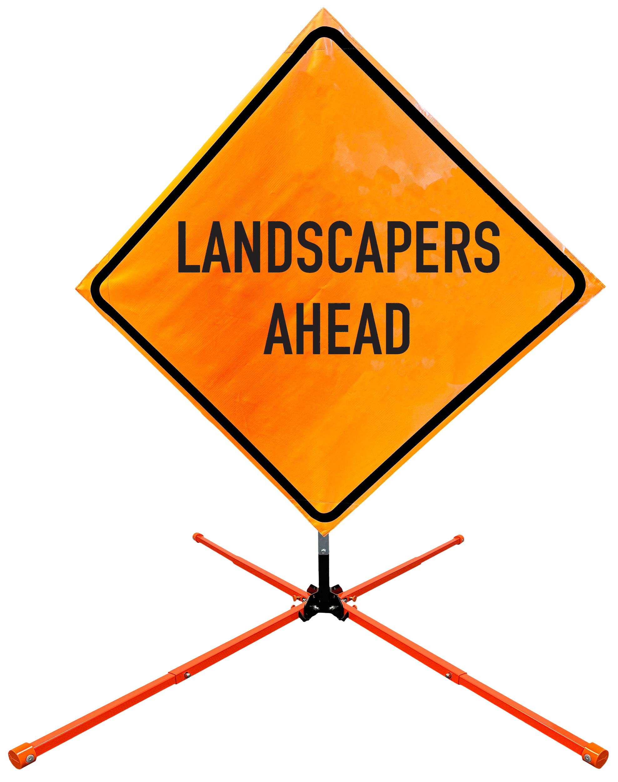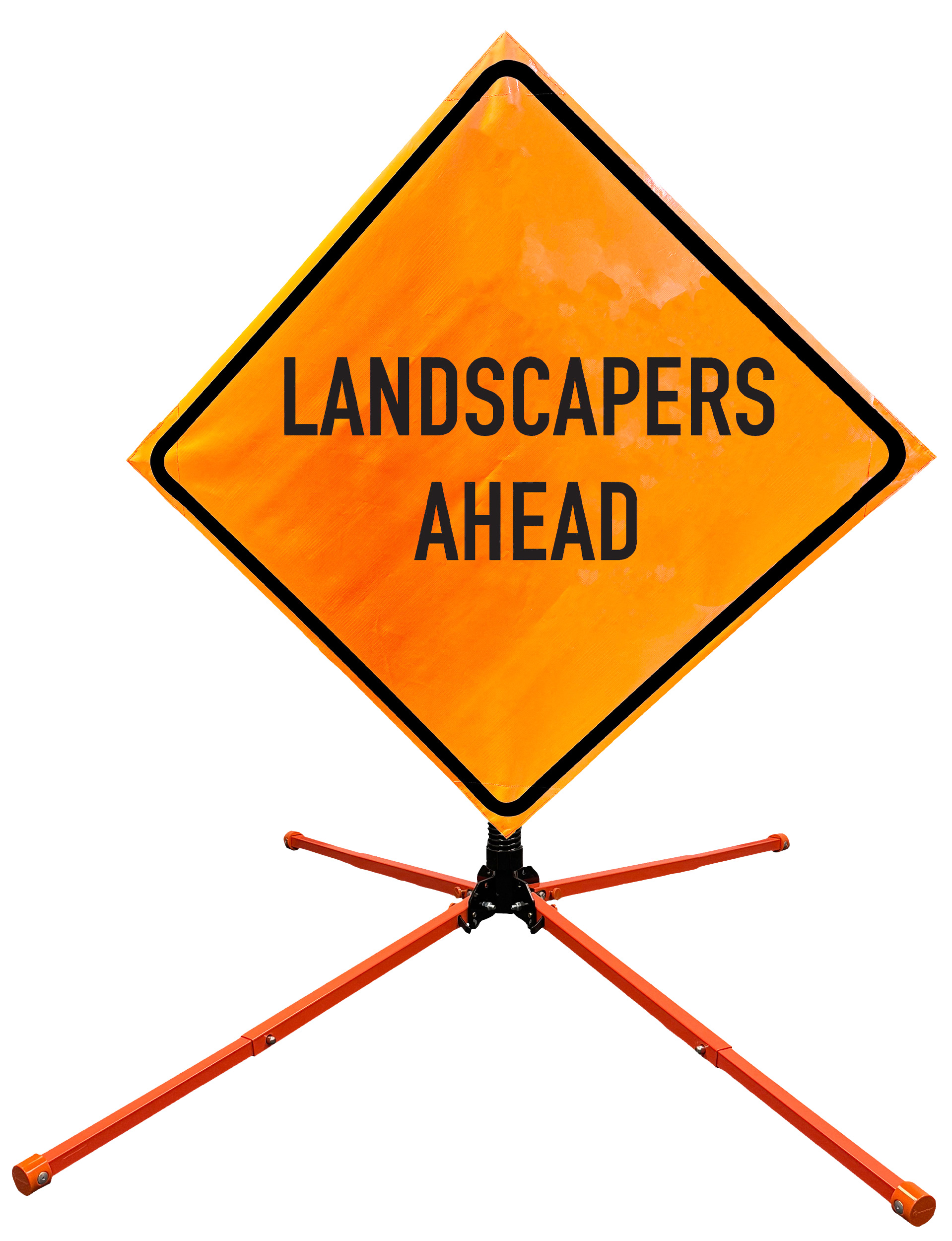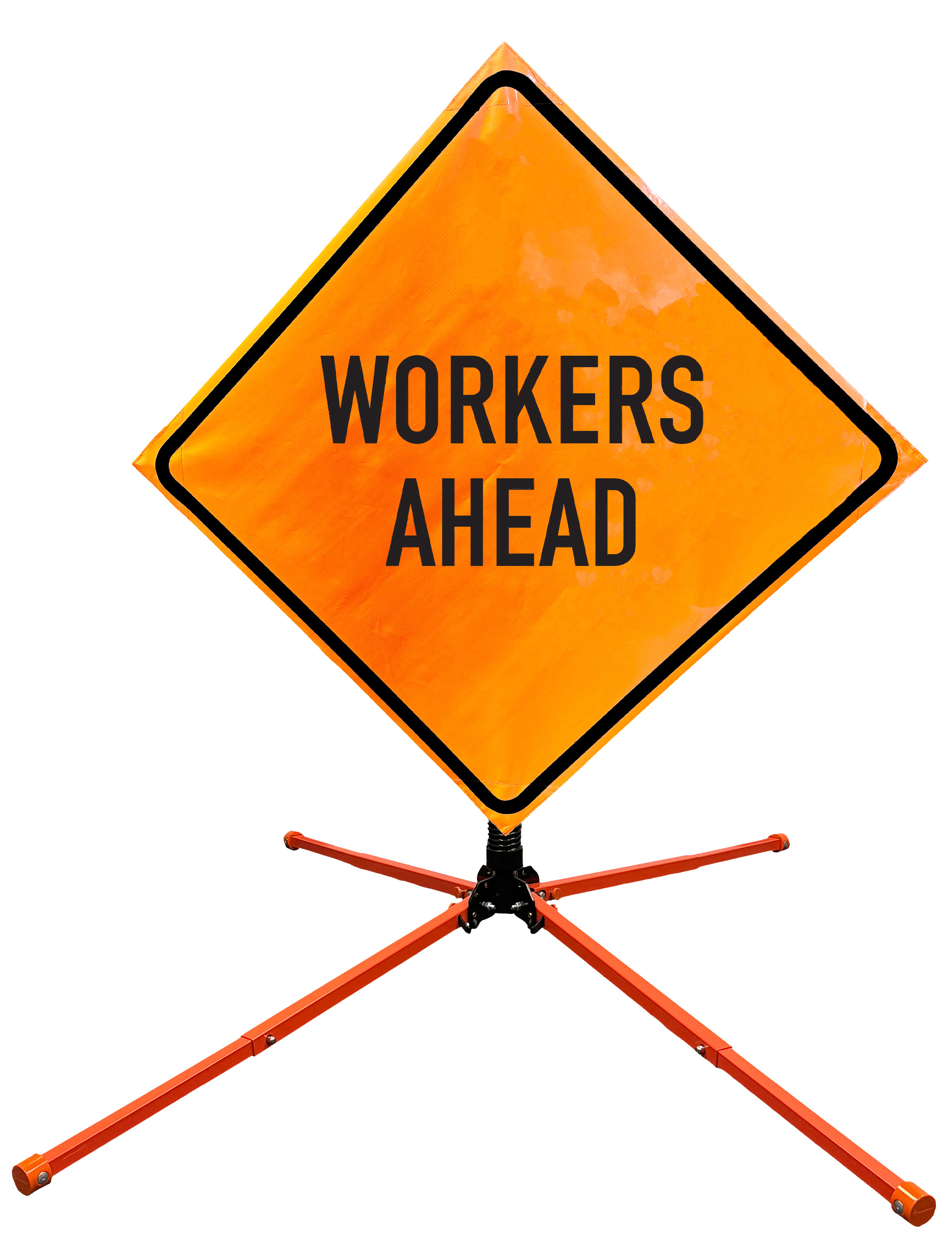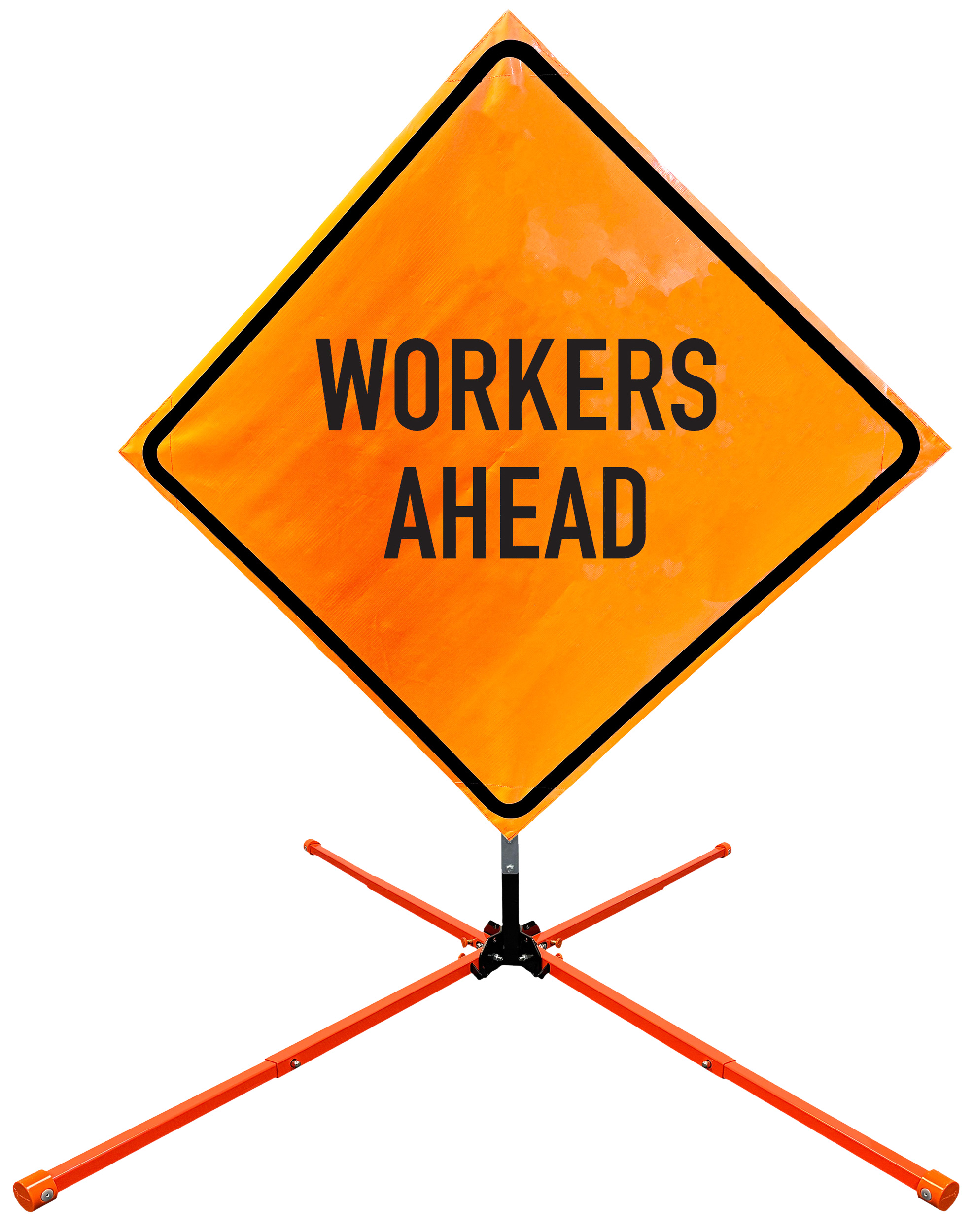 Roll Up Sign & Stand Kits - OrangeGear®: 48" x 48" Non-Reflective Vinyl Single Spring Steel WORKERS AHEAD