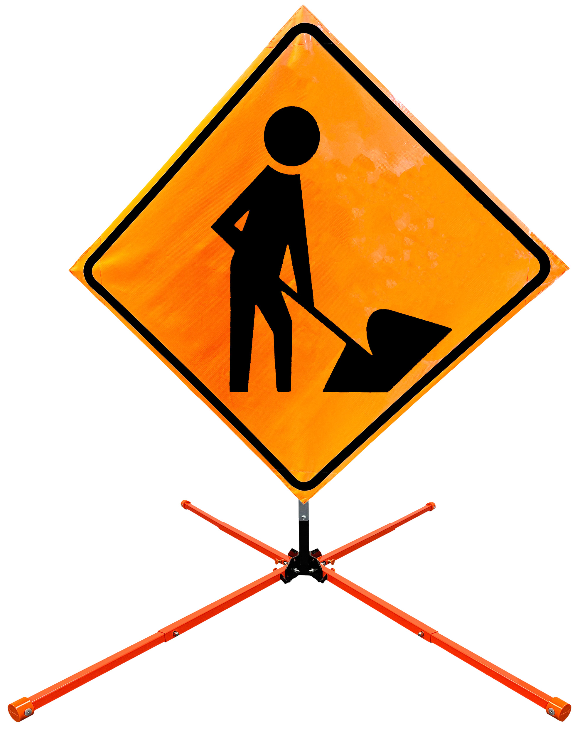 Roll Up Sign & Stand Kits - OrangeGear®: 48" x 48" Non-Reflective Vinyl Single Spring Steel WORKER SYMBOL