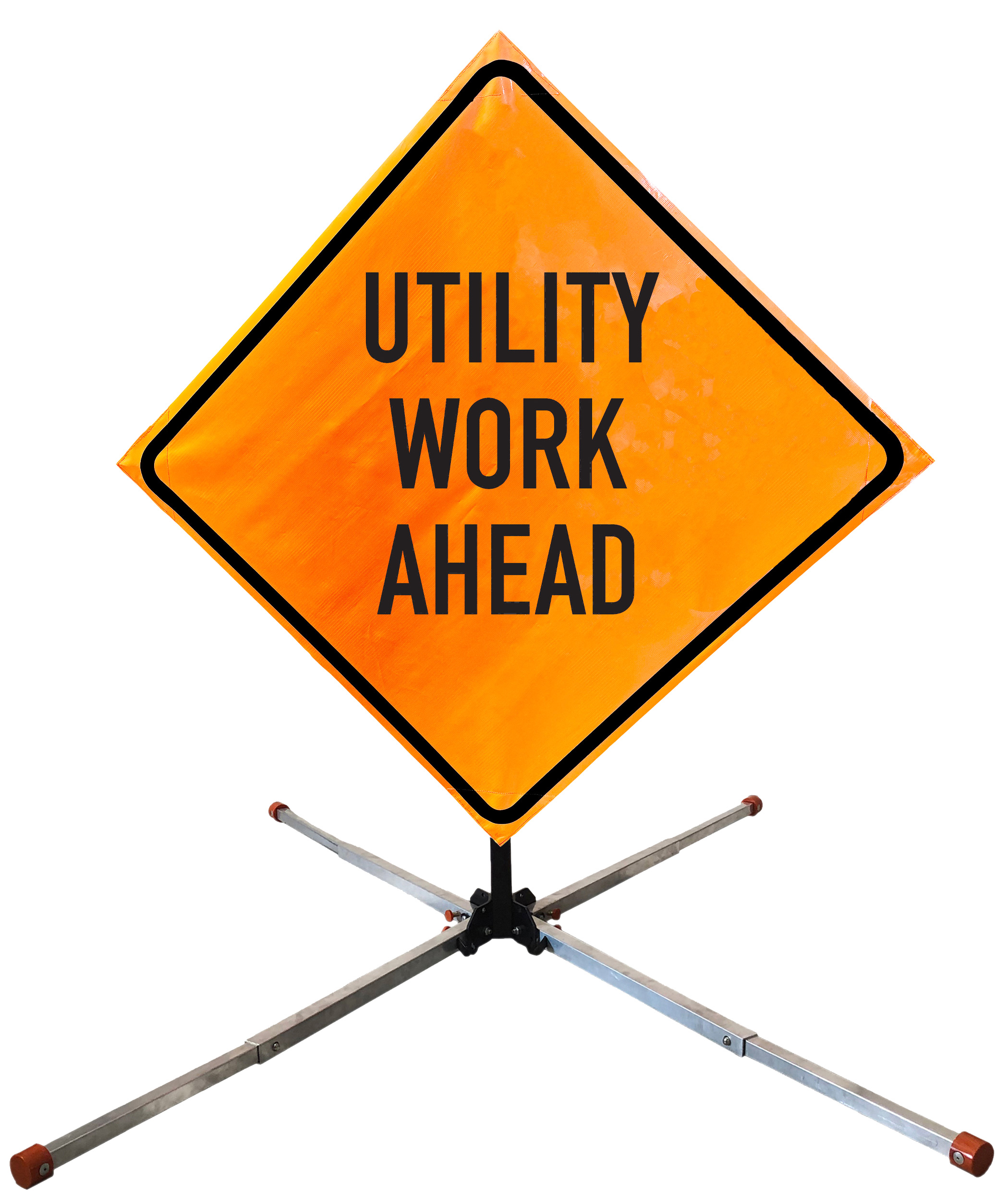 Roll Up Sign & Stand Kits - OrangeGear®: 48" x 48" Non-Reflective Vinyl Springless Steel UTILITY WORK AHEAD