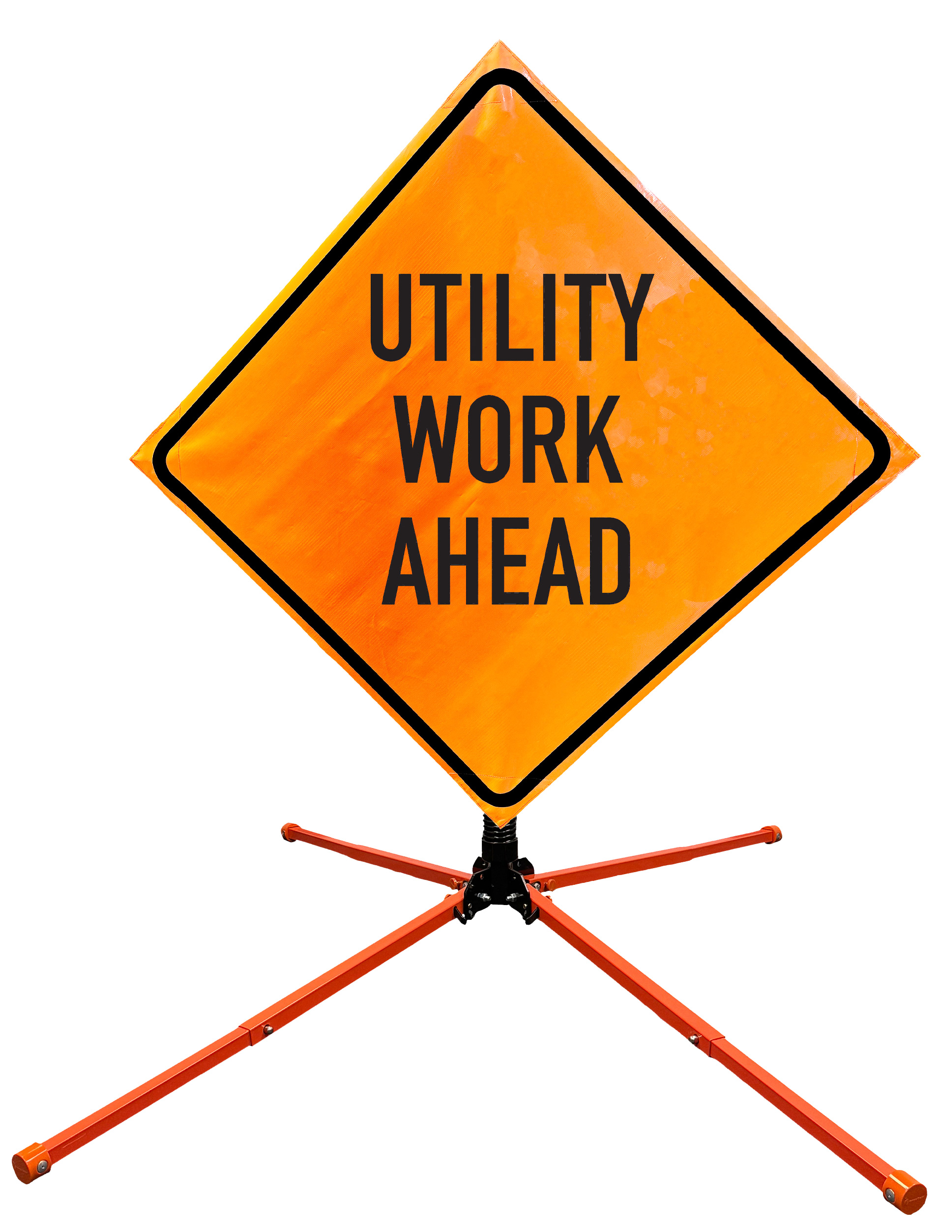 Roll Up Sign & Stand Kits - OrangeGear®: 48" x 48" 3M High Intensity Single Spring Steel UTILITY WORK AHEAD